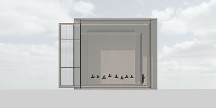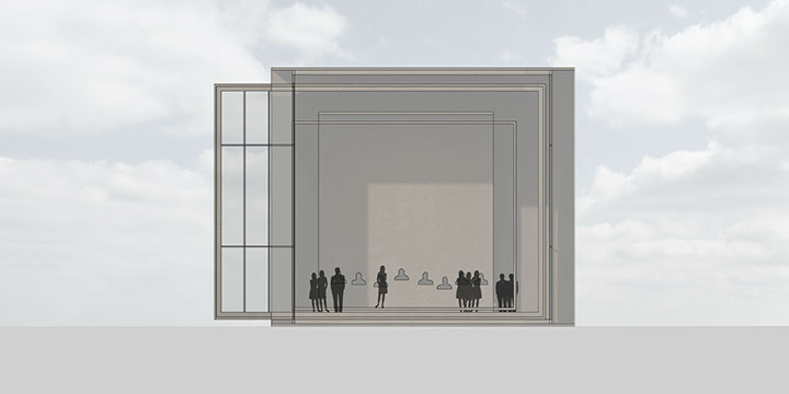 Six pavilions for six pieces of music are part of this set, of which three have got a shape in this design studio; a sacral pavilion for Allegri’s Miserere Mei, an installation with curtains for Shubert’s Piano Trio in e minor and an installation that can be used for both Merula’s Ciaconna and Vivaldi’s Violin concerto in e minor.