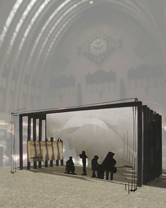 A possible interpretation of working with sound and space, is to design several relatively small spaces, designed for specific pieces of music: a travelling set of music pavilions. This set can either be temporarily placed in a city (for example in Utrecht; a pavilion at the Neude, an interior installation in the former post office) or in a rural area (for example at national park the Hoge Veluwe; a pavilion placed in nature, an interior installation placed in the Radio Kootwijk building), together forming a sequence of music experiences placed in a walking or cycling route. An experience of different pieces of music, in an environment (building or installation) that tells the story of the music and the time that they are from. Together, these pavilions and installations show the development of music through the ages, combined with an atmosphere and acoustics that emphasize the nature of the piece.