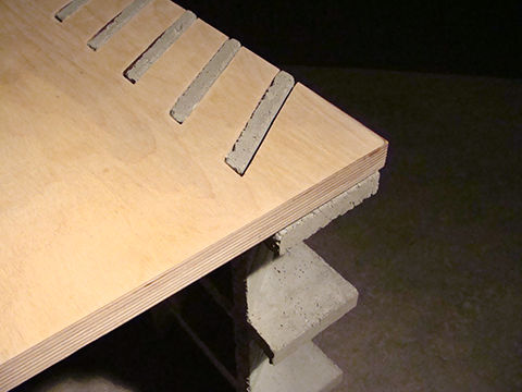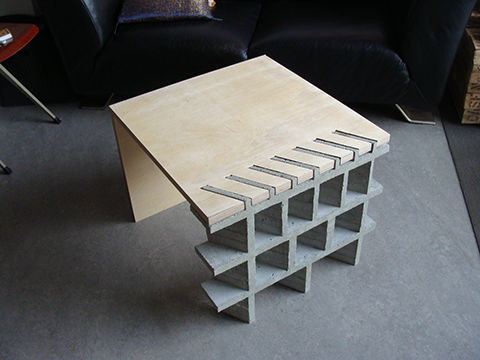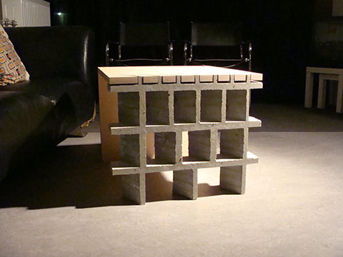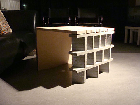 may 2014 Concrete design competition, production and parts een tafel geïnspireerd op 'the tower of shadows' van Le Corbusier in Chandigarh. Spel van beton en licht.